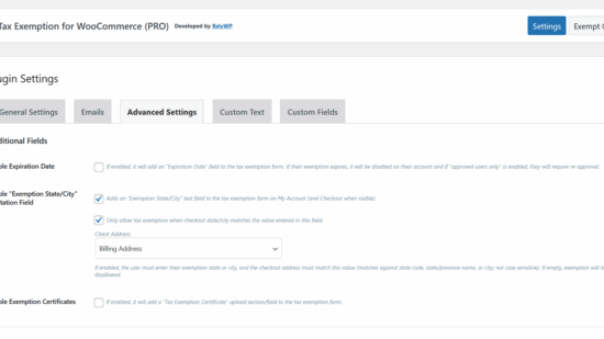 Blog WordPress tips, tutorials and more!Introducing our newest plugin: Simple Points and Rewards for WooCommerceREAD MOREHike SEO Review: The Best SEO Tool for Small Businesses?READ MOREUpdate 2.3.0 – Tax Exemption for WooCommerce – State/City LimitsREAD MORETop WordPress Black Friday Deals Lists for 2025READ MORE10 Best WooCommerce Affiliate Plugins To Increase Your Sales (2025)READ MOREUpdate 2.0.0 – Tax Exemption for WooCommerceREAD MOREUpdate 3.0.0 – AI Text to SpeechREAD MOREHow to Create Multi-Layer Backups in WordPressREAD MOREHow to Monitor Website Uptime in WordPressREAD MOREHow to create an EIN Field for US Tax Exempt Customers in WooCommerceREAD MOREVulnerability Monitoring in WordPress – Why is it important?READ MOREHow to add Cloudflare Turnstile to WordPress FormsREAD MOREWhy Your Business Needs a WordPress Care Plan in 2025READ MOREUpdate 2.3.0 – AI Text to SpeechREAD MOREHow to generate AI text-to-speech for WordPress postsREAD MOREBest AffiliateWP Alternatives 2025READ MOREHow to Create Advanced Customer Reports in WooCommerceREAD MOREHow to setup disability VAT exemption for WooCommerceREAD MOREHow To Speed Up Your WordPress Website (2023)READ MOREHow to add Google reCAPTCHA to WooCommerceREAD MORE 1 2